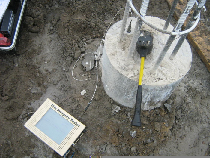 完整性测试通常是在对生产桩进行观察的同时进行的。因此,完整性测试是无损测试,旨在帮助评估深基础的就地形状。manbet体育滚球Braun Intertec最常在钻孔的深地基上进行完整性测试,因为将桩打入地下本身就是一种完整性测试形式。对于深基础,最常用的完整性测试是跨井声波测井和使用脉冲回波或瞬态响应方法的低应变测试。